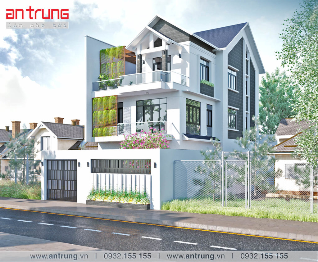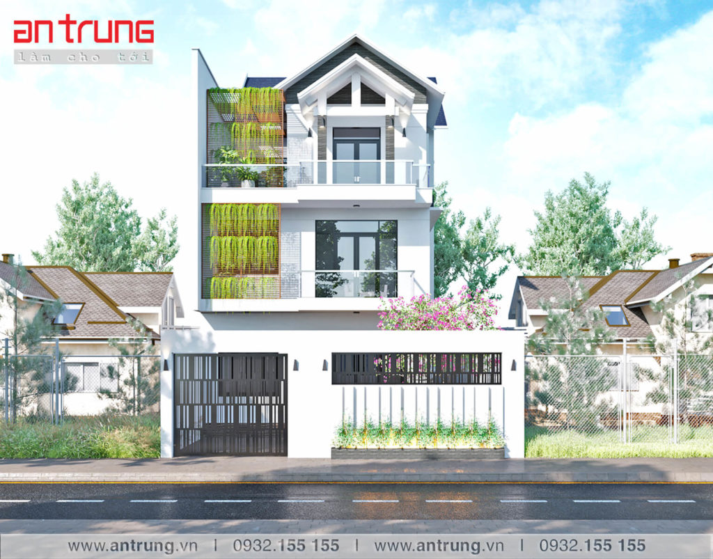 Hình thiết kế Hình thi công Thông tin mẫu nhàDiện tích lô đất : 237 m2Diện tích xây dựng : 145 m2Số tầng cao : 3 tầngBề rộng mặt tiền : 10 m
